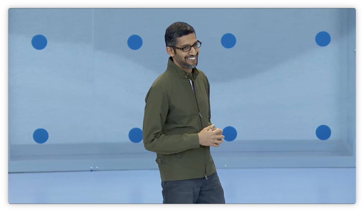 Sundar Pichai entame par son topic favori : l'intelligence artificielle. Et explique comment l'IA peut aider concrètement la médecine. Il explique notamment que des docteurs et institutions médicales ont pu utiliser les technologies pour prédire des soucis de santé de patients.
